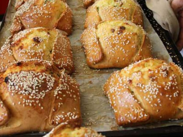 Semolina Halva Easter 30 Min Serves 20 80 kcal Made with Semolina Flaunes Easter 2 Hours Serves 12 225 kcal Made with Plain Flour Tsoureki Easter 2 Hours Serves 2 160 kcal Made with Plain Flour Cookies with Tahini Easter 40 Min Serves 30 155 kcal Made with Plain Flour