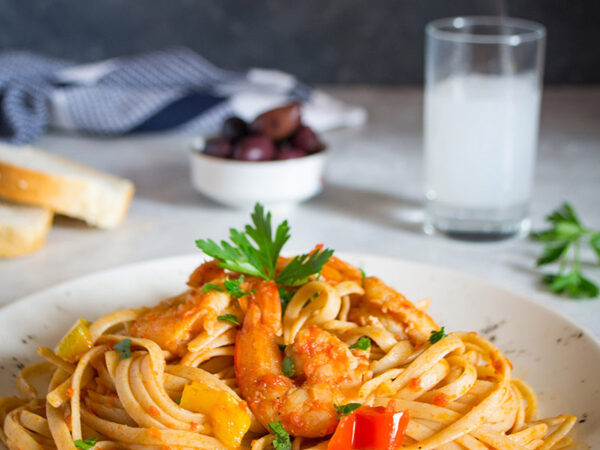 Linguini with Ouzo & Shrimp